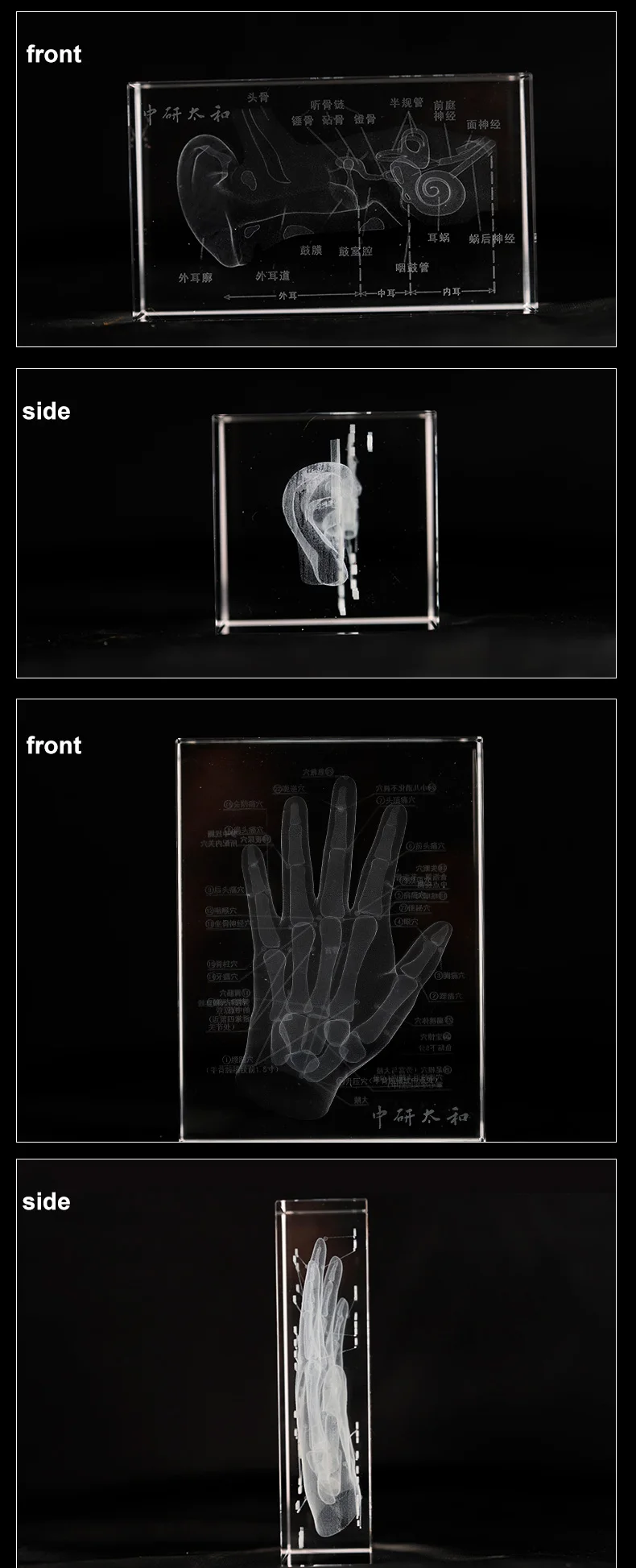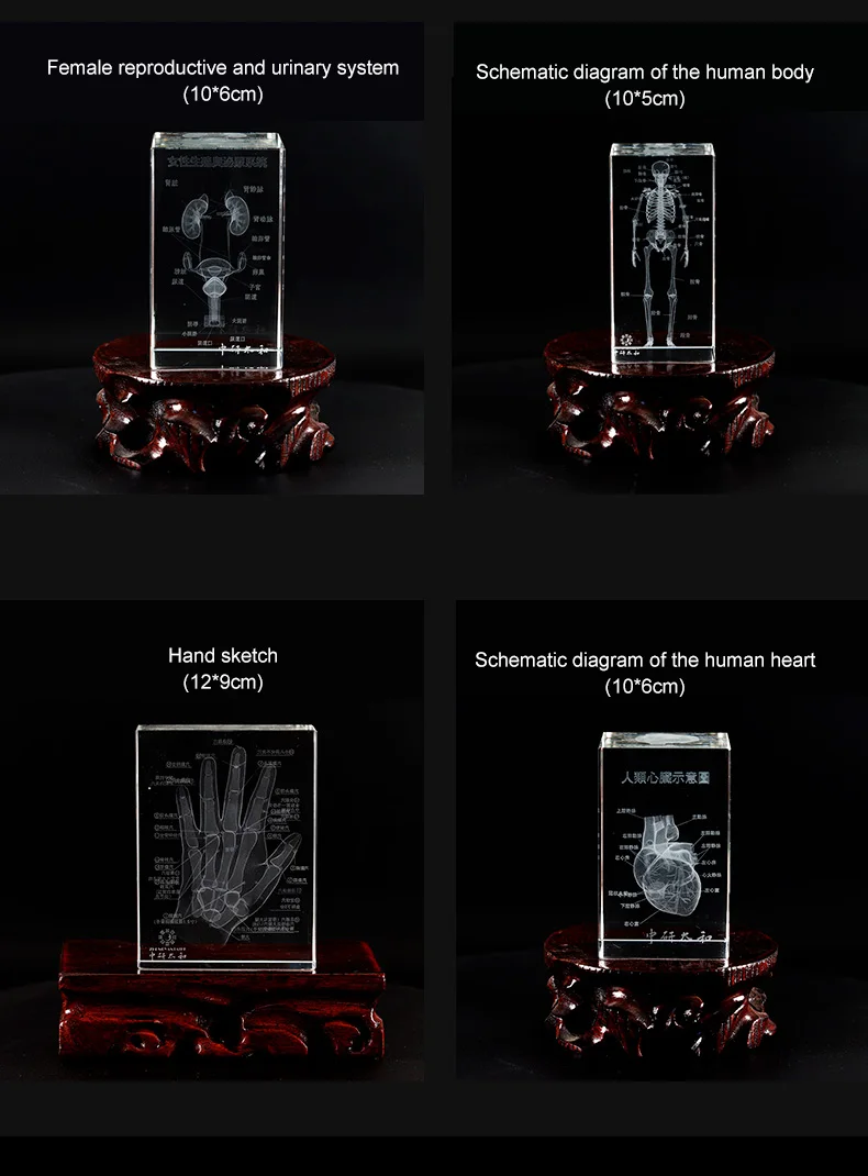 人体心脏耳朵骨骼水晶摆件 3D器官解刨图展示标本医学纪念品礼物