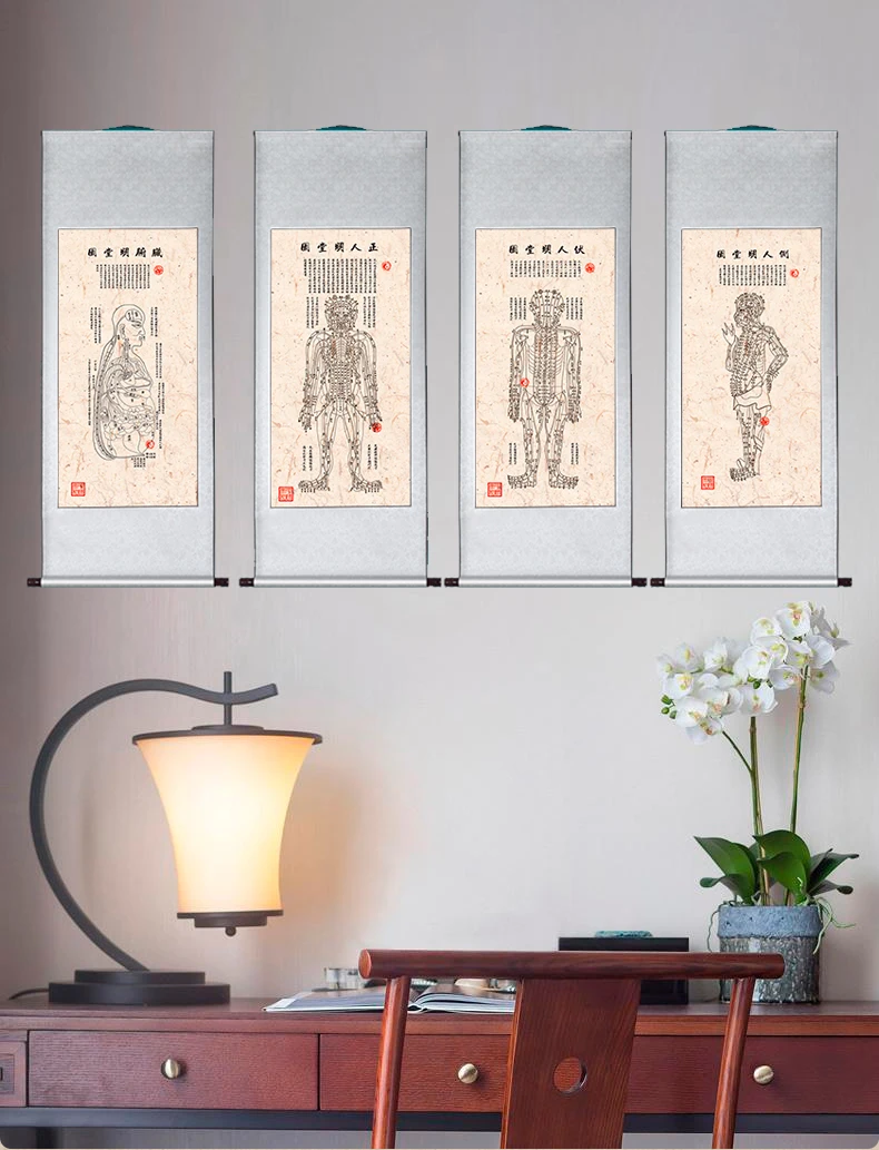 ZHONGYANTAIHE Brocade Scroll Painting Room Decor Aesthetic Asian Wall Silk Reel Painting Hall of Fame(20 X 53inch)